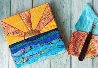 Kinusaiga is a 20th-century Japanese "no-sew" fabric art form—often called "silk painting" or quilting with fabric—that creates detailed, patchwork-style pictures by tucking fabric scraps into grooves cut into a foam or wood board. The method relies on tension and pressure to hold the fabric in place, making it a "threadless" quilt.